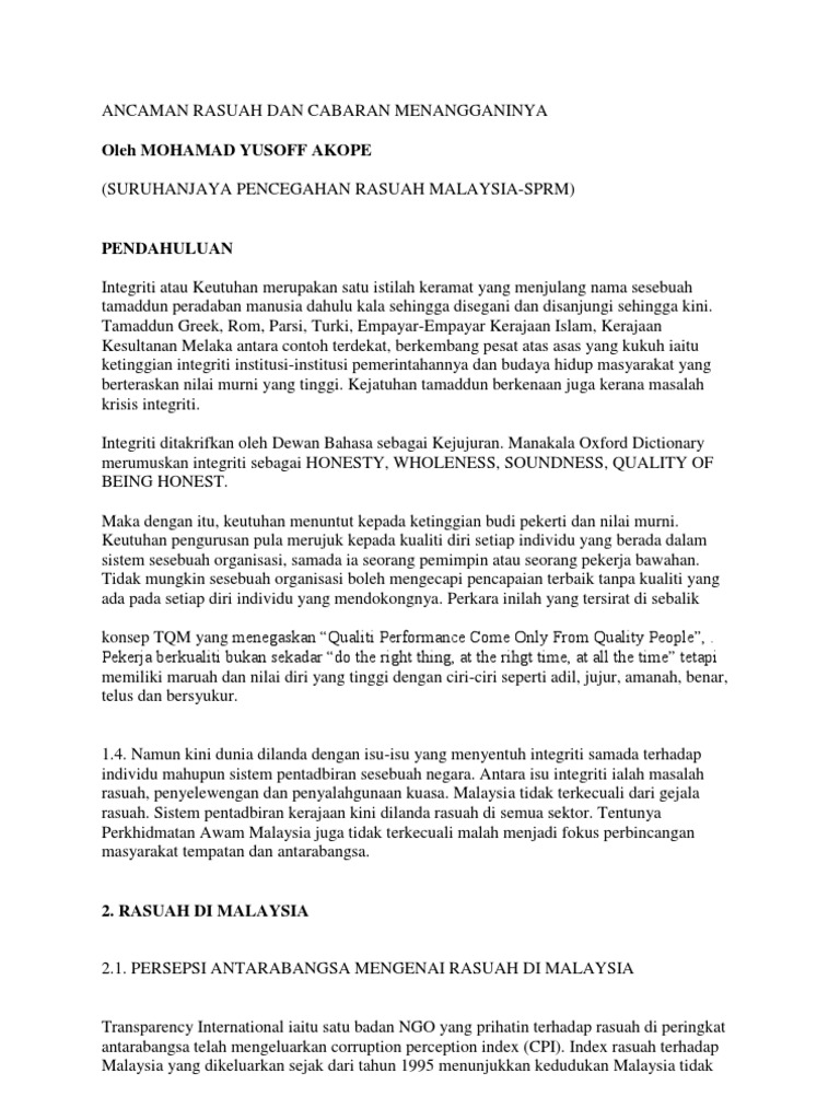 Namun, sejak berlakunya pertukaran kerajaan, satu persatu skandal rasuah dibongkarkan. Jawatankosong terkini di suruhanjaya pencegahan rasuah malaysia sesi 2020. Isu lgbt di malaysia analisis perspektif agama dan hak asasi manusia titas tugasan kumpulan uw00202 youtube. Definisi punca kesan penyelesaian isu rasuah di malaysia. Isu dan candangan ke arah pelaksanaan hukuman ta'zir bagi jenayah rasuah di mahkamah syariah jenayah rasuah bukan lagi merupakan sesuatu yang asing bagi setiap negara di dunia ini.